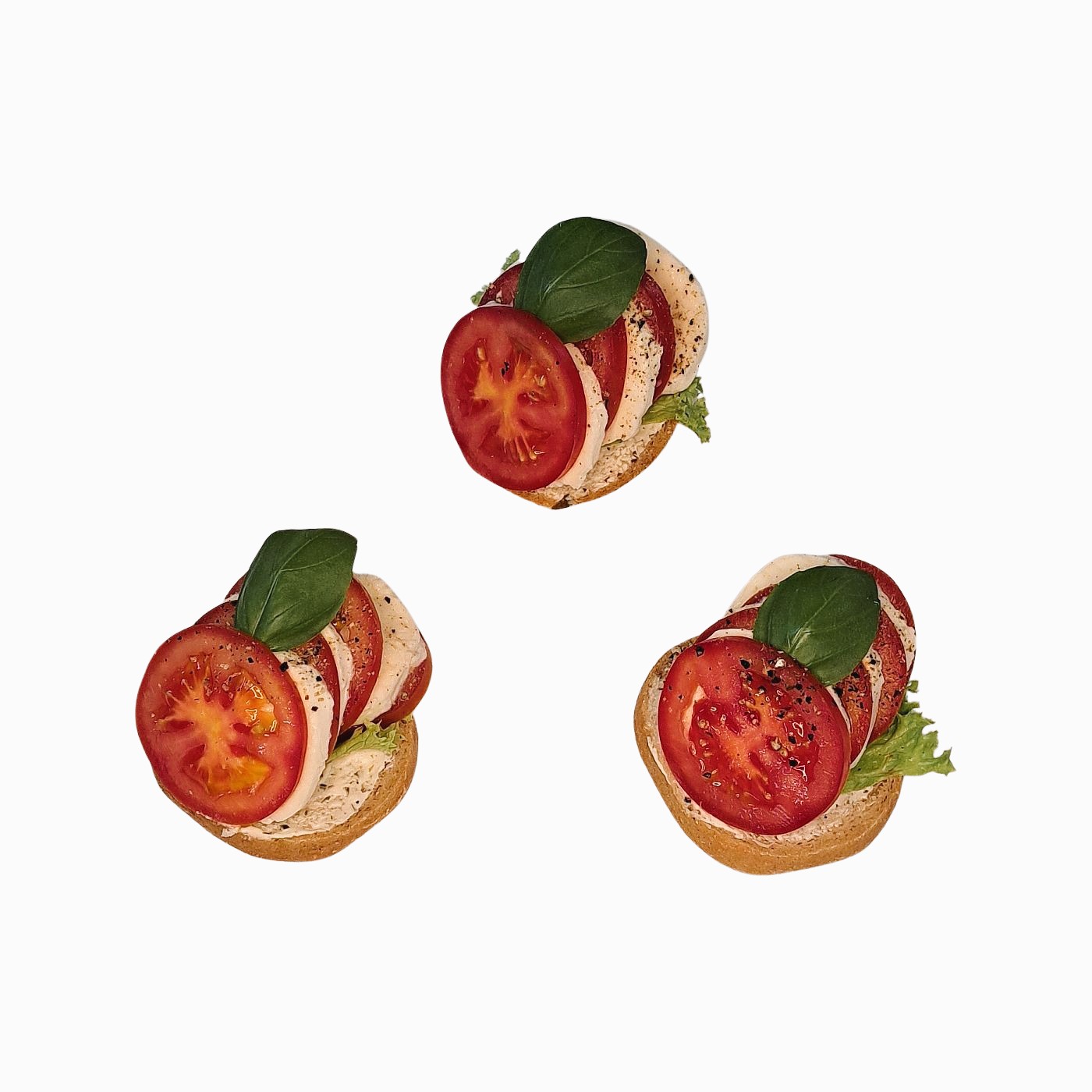 - Tomate-Mozzarella mit buntem Pfeffer, Basilikum (vegetarisch)